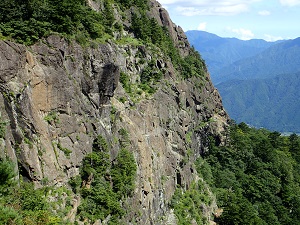 | 非常に大きな岩場なのでショートルートからマルチピッチまで幅広く楽しめます。特に南壁はスケールが大きく明るい。岩場の上方は非常に眺めがよく大仁の街が一望出来ますが、岩質は柔らかい凝灰岩なので落石には注意が必要です。初心者から上級者まで楽しむ事が出来るこちらもお勧めの岩場。 | ||||||||||||||||||||||||||||||||||||||||||||