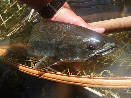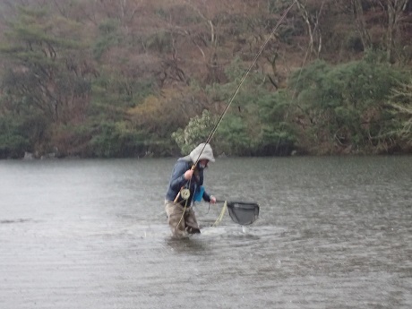ニジマスは50cm前後 湖ではWハンドを中心としたストリーマーから